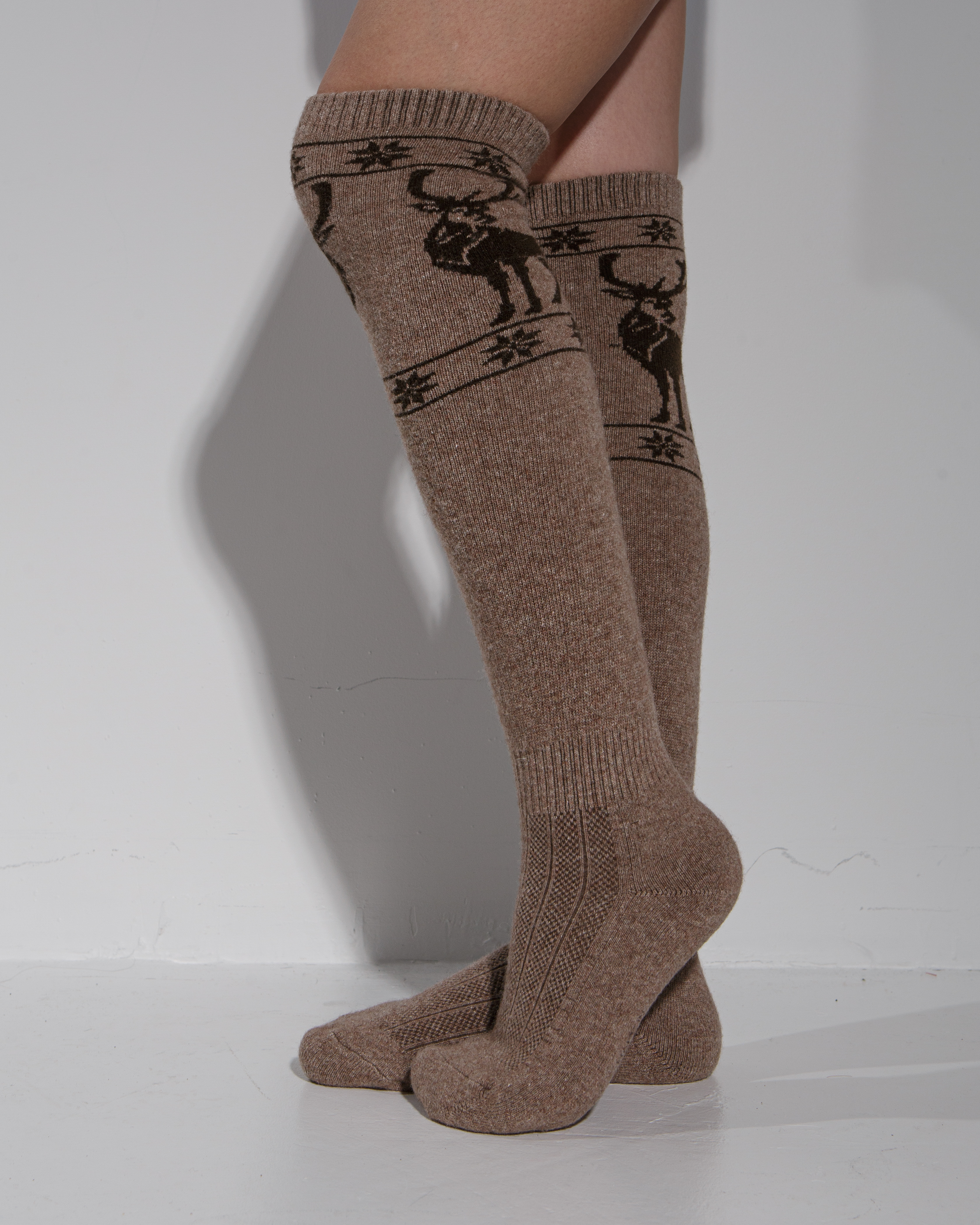 Теплые гольфы из монгольской шерсти коричневые с рисунком