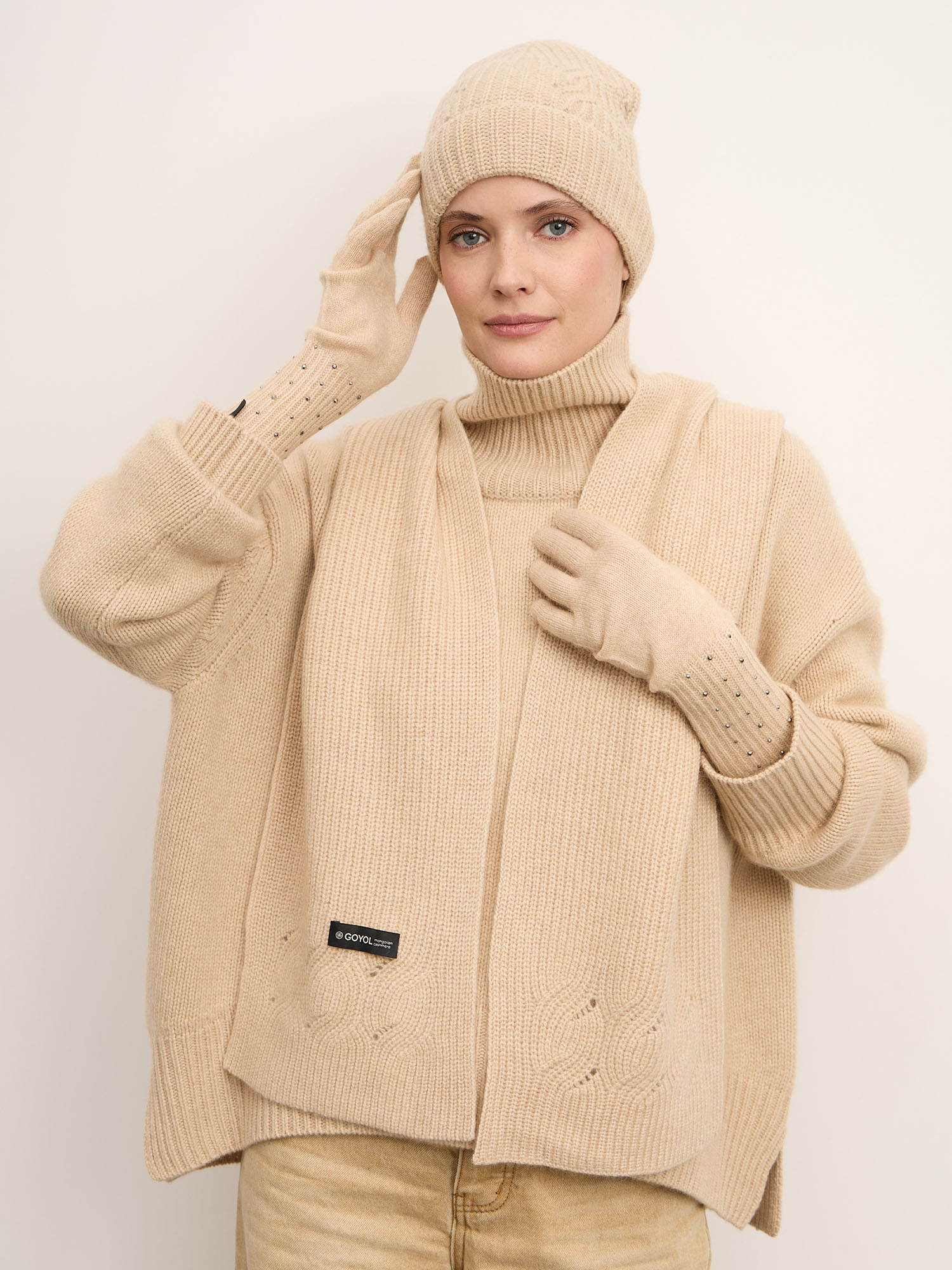 100% натуральный кашемир премиального качества — лёгкий, мягкий и тёплый. Волокно отличается высокой воздухопроницаемостью, деликатной текстурой и способностью отлично сохранять тепло, обеспечивая комфорт при носке.