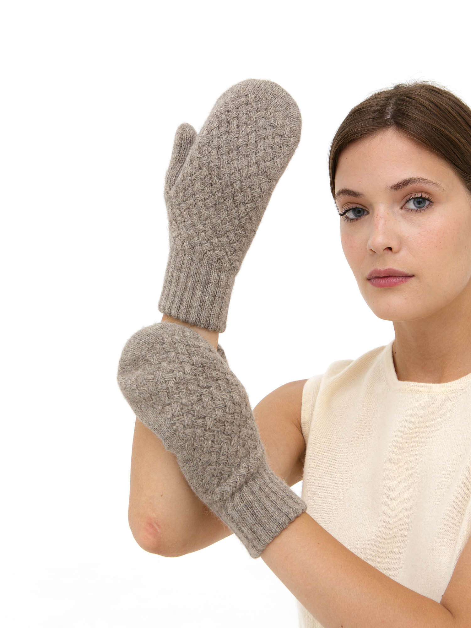 Двойные варежки из пуха яка в универсальном сером оттенке — это идеальное сочетание тепла, комфорта и лаконичного стиля. Модель обеспечивает надежную защиту от холода даже в морозную погоду, а текстурная вязка на варежках добавляет изделию визуальную глубину и аккуратную выразительность. Благодаря двойной конструкции варежки эффективно удерживают тепло и создают ощущение уюта.