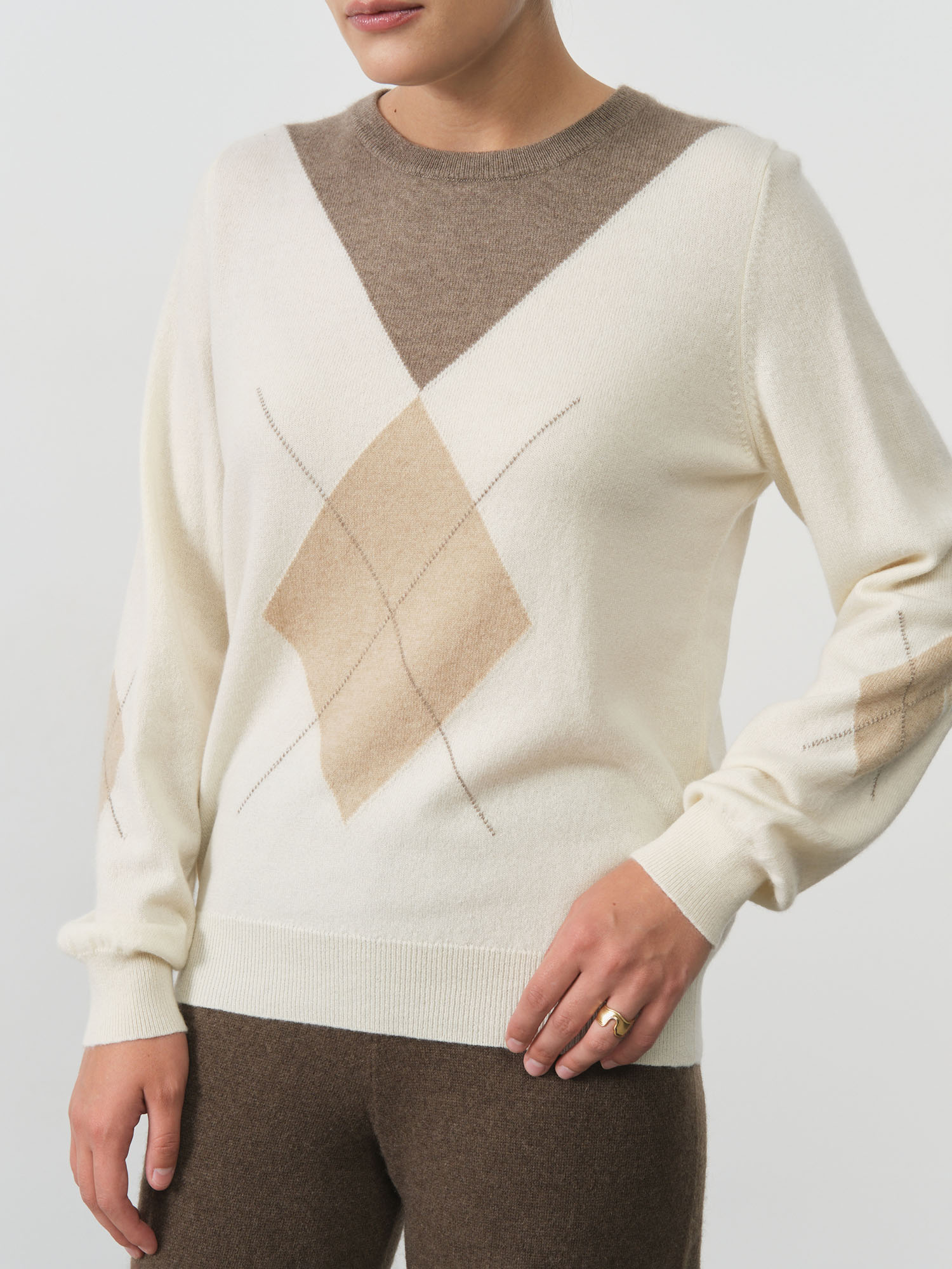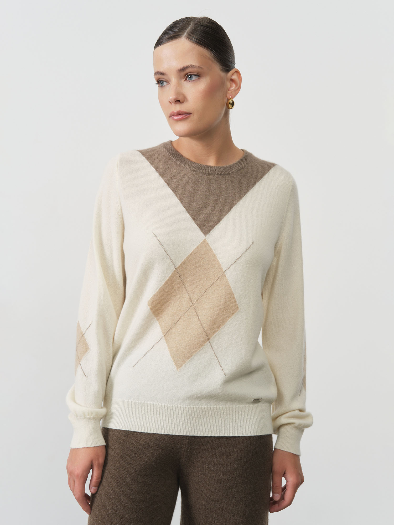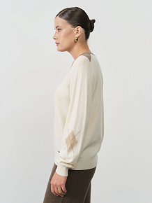 Благородный нейтральный оттенок делает эту модель универсальной основой гардероба. Джемпер одинаково органично смотрится с деловыми костюмами, создавая элегантный офисный образ, и с джинсами для повседневных прогулок. Полуприлегающий крой мягко обрисовывает силуэт, сохраняя при этом комфортную свободу движений, а классическая горловина добавляет образу завершенность.